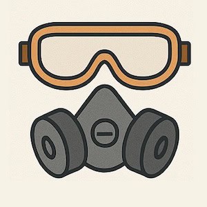 Safety goggles, gloves, and a respirator mask protect you from dust, fumes, and debris.